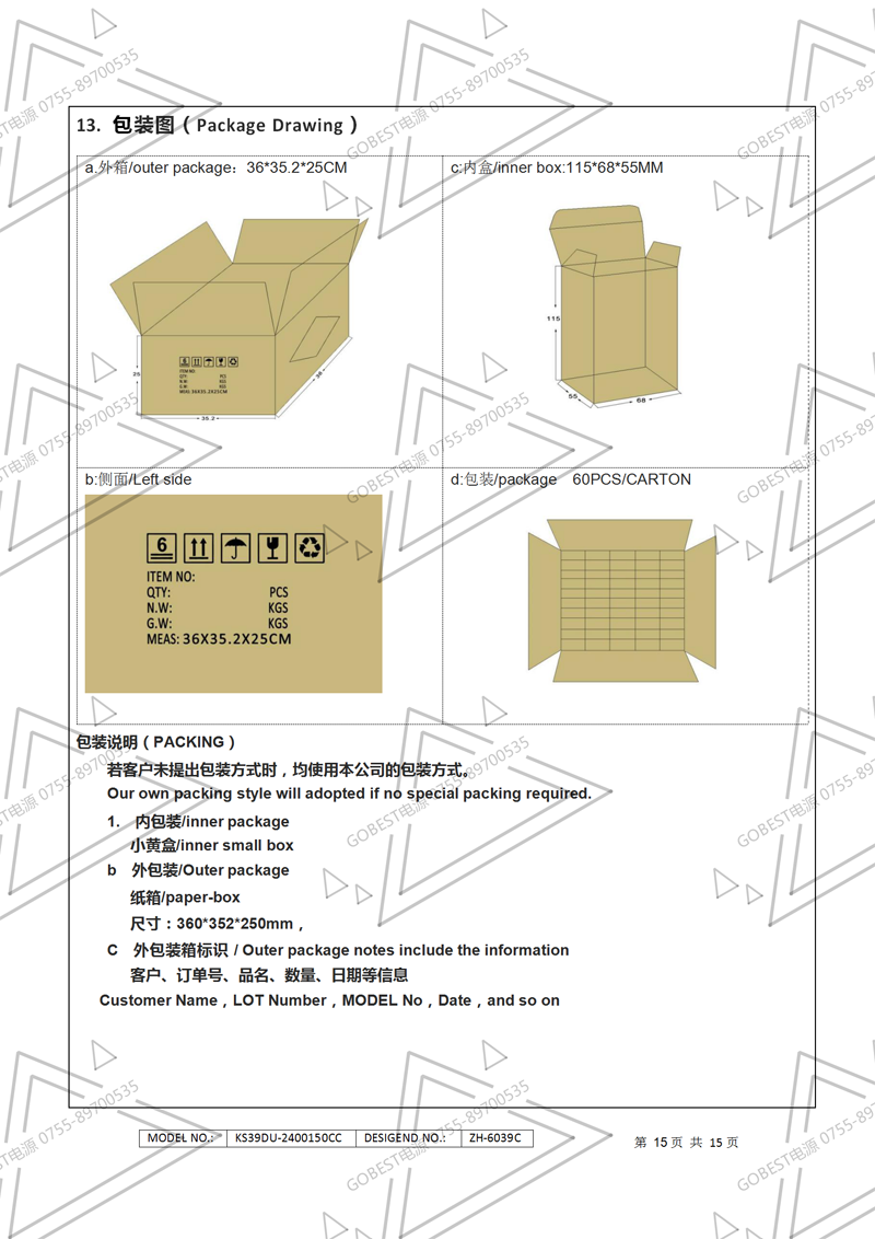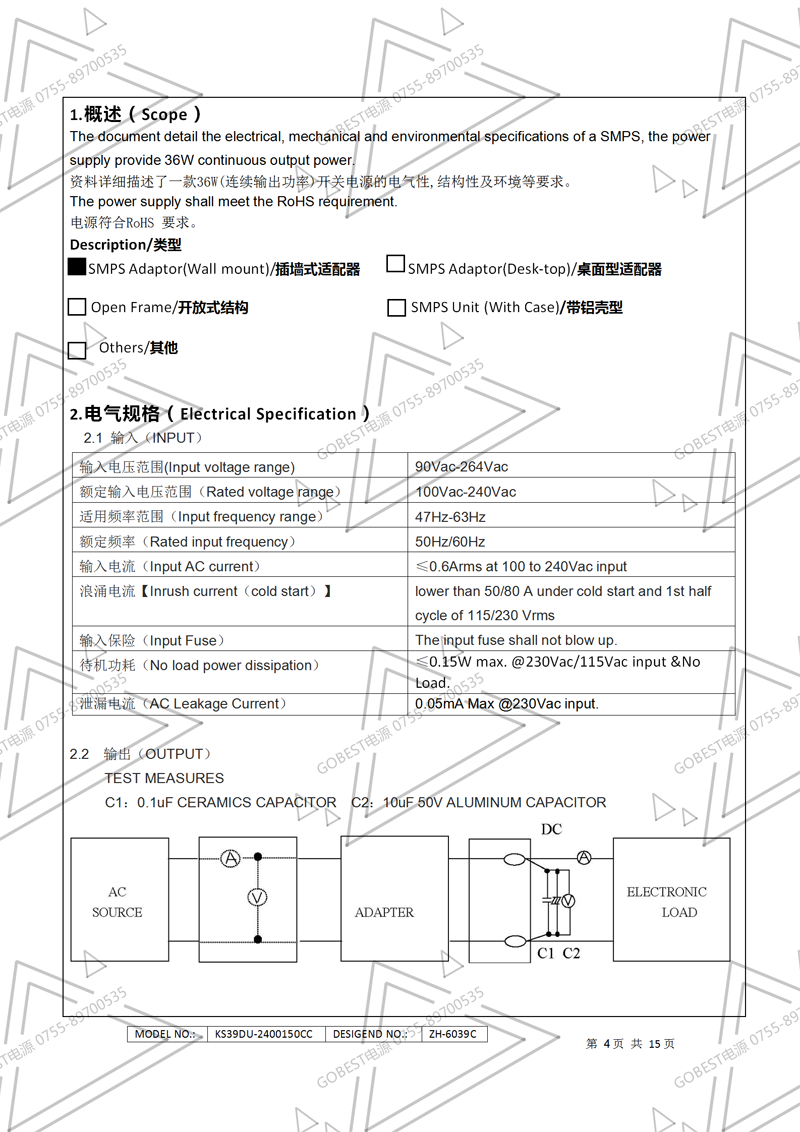24V1.5A電源適配器規格書(國標插墻式)