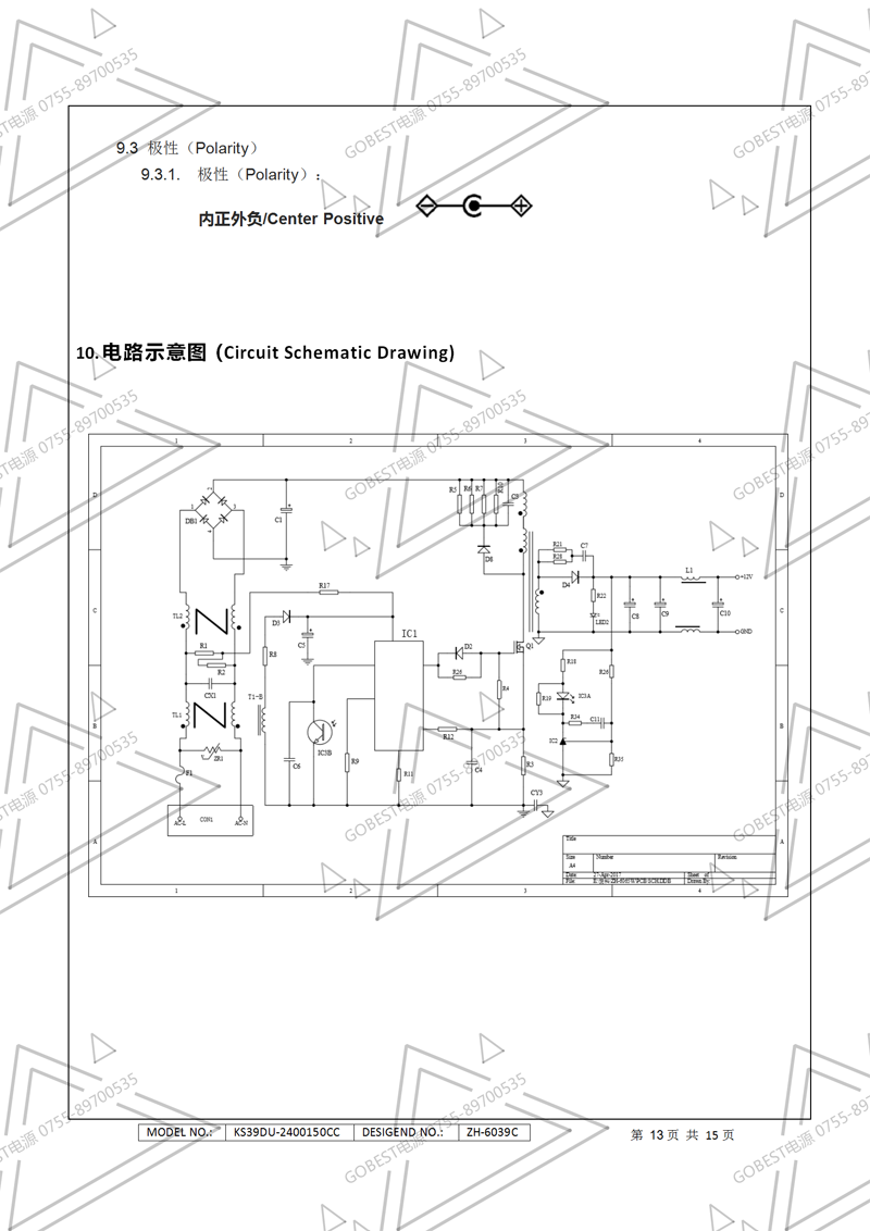 19V3.5A電源適配器規格書