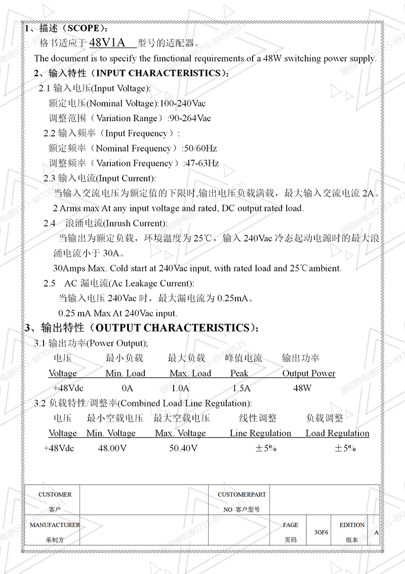 電源規(guī)格書